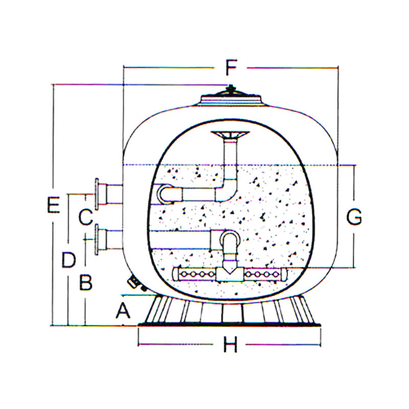 Code 2.5Bar | Code 4.0Bar | Model No | Filter Area(m2) | Valve Connections | Max Flow Rate | Sand (Kg)0.5-0.8mm | Gravel(Kg)1-2mm |
